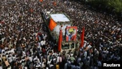 ათასობით ინდოელი დღეს ქვეყნის ერთ-ერთ ყველაზე ხმაურიან ექსტრემისტ ლიდერს გამოემშვიდობა.